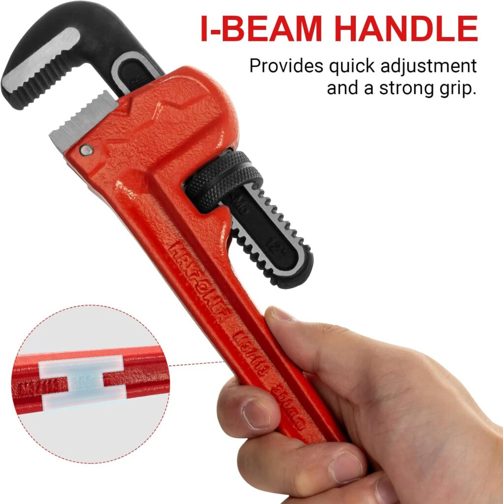 - PREMIUM MATERIAL – Made with high-quality high-carbon steel, the jaw is drop-forged and heat-treated to increase hardness. The durable ductile iron-casting I-beam handle ensures long-lasting durability.