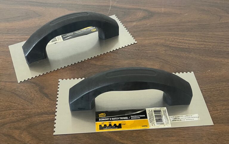 used to spread mortar/adhesive on floors, walls etc