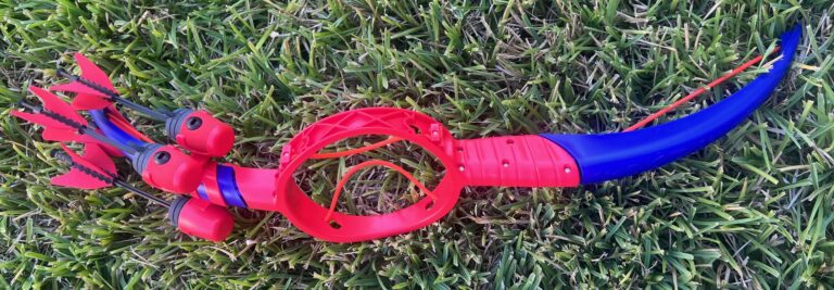 Includes a snap-on quiver that holds 4 arrows.